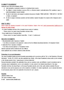| Support | Round-trip international airline tickets (discount economy class, most direct and economical route) from your country to Singapore, Japan, and back to your country, Domestic transportation and accommodation in Singapore and Japan, Per diem (No program fees are required) |